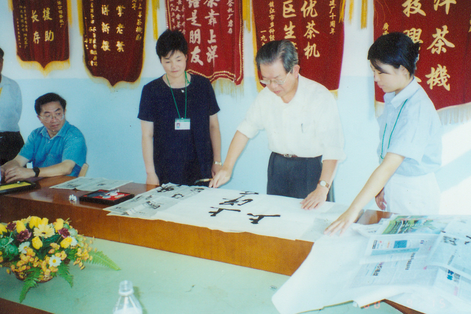 • 1990年, 衢州市委書記郭學煥來公司檢查指導工作。在聽取公司總經理程玉明對相關茶機產品的介紹后,潑墨提毫贊“生產名優茶機,致富農村農民”。