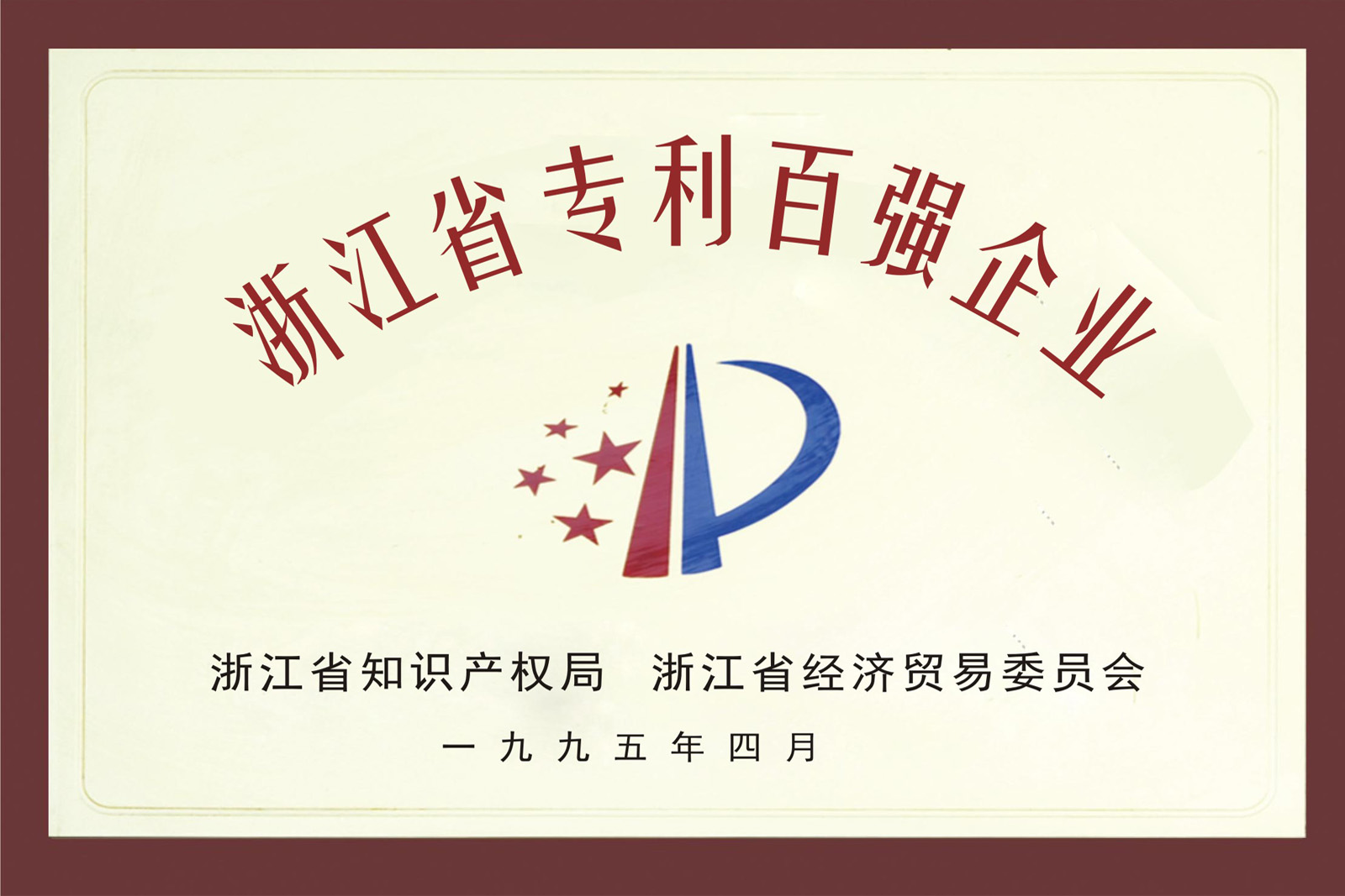 • 1995年4月,公司被評為浙江省專利百強企。