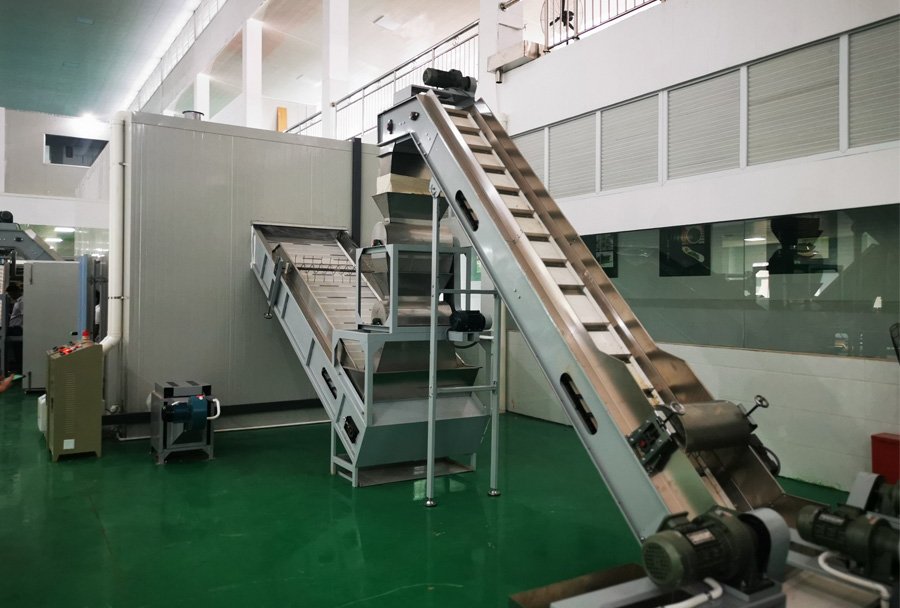 作業(yè)原理:連續(xù)發(fā)酵機可在發(fā)酵過程中實現(xiàn)供氧、換氣、加溫、增濕等功能,科學布局溫、濕度管道保證相對恒定的發(fā)酵環(huán)境,連續(xù)發(fā)酵機主機置于發(fā)酵箱體(房)內(nèi),設置多層輸送網(wǎng)帶,揉捻葉達到發(fā)酵要求后,自動流出到下個環(huán)節(jié)。